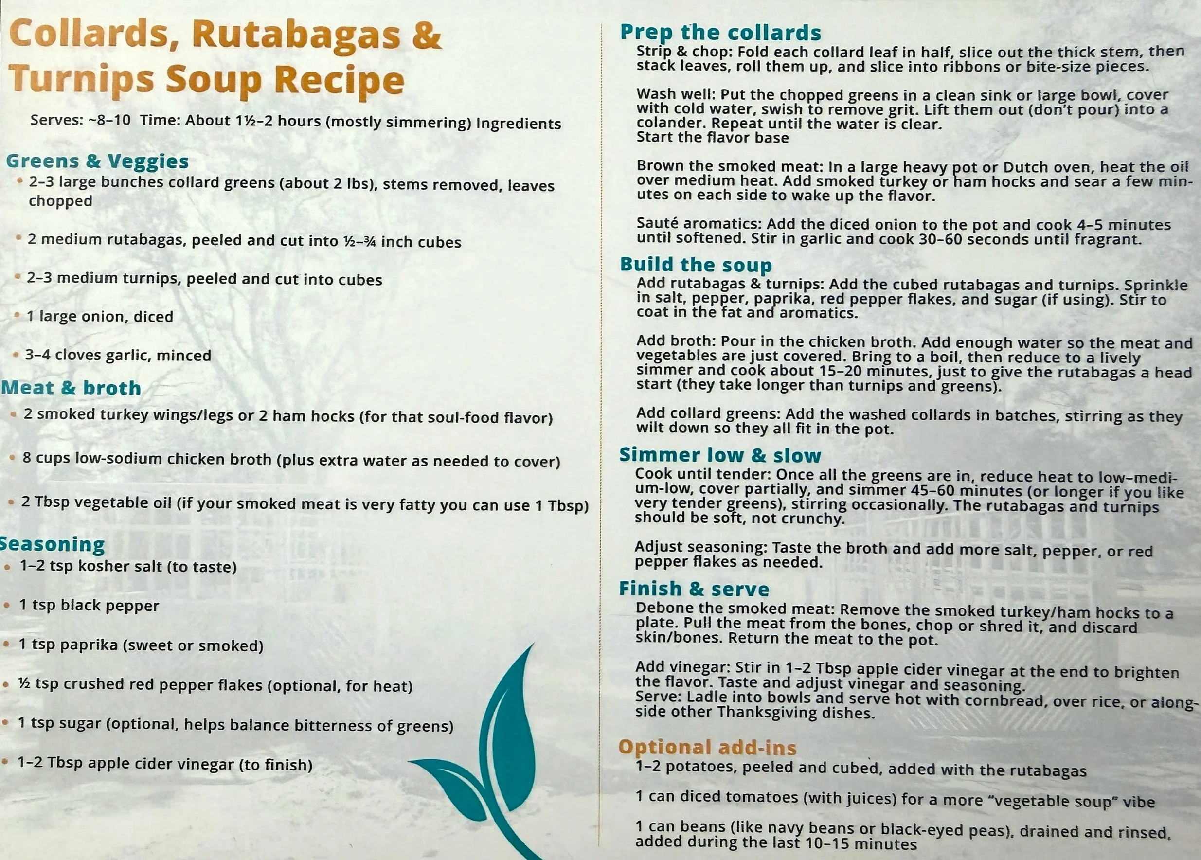 Today we are sharing this delicious recipe for Collards, Rutabagas, and Turnips in a savory soup recipe. We hope you enjoy!